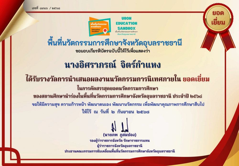 รางวัลโปสเตอร์ผลงานนวัตกรรมด้านการนิเทศภายใน ดีเด่น