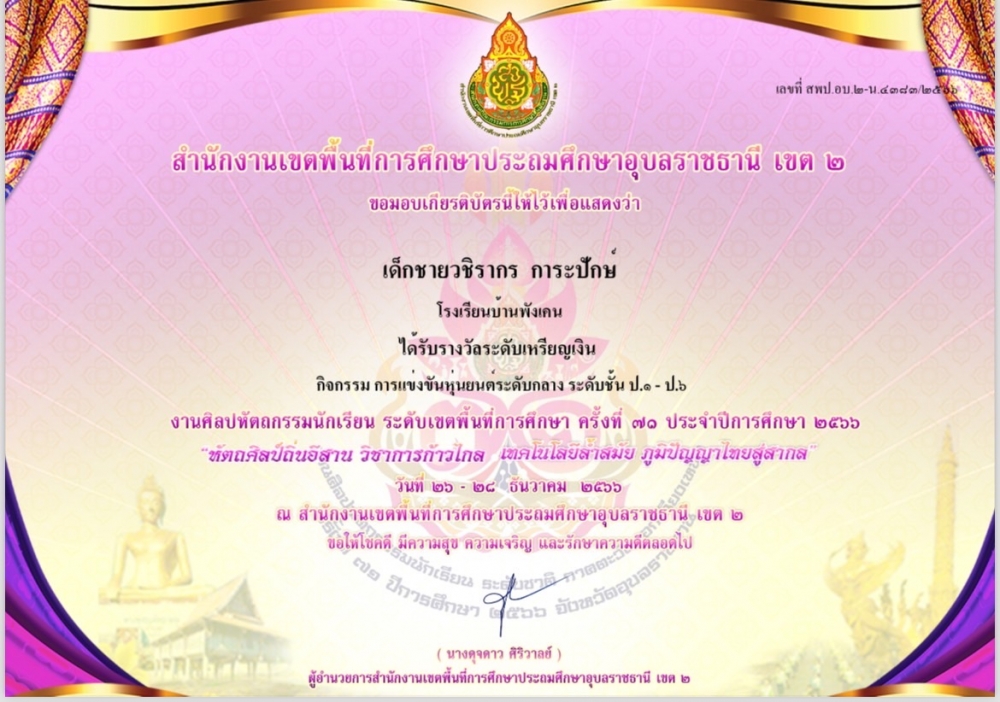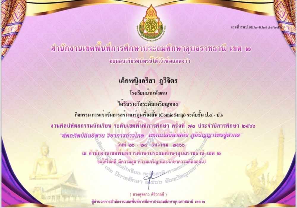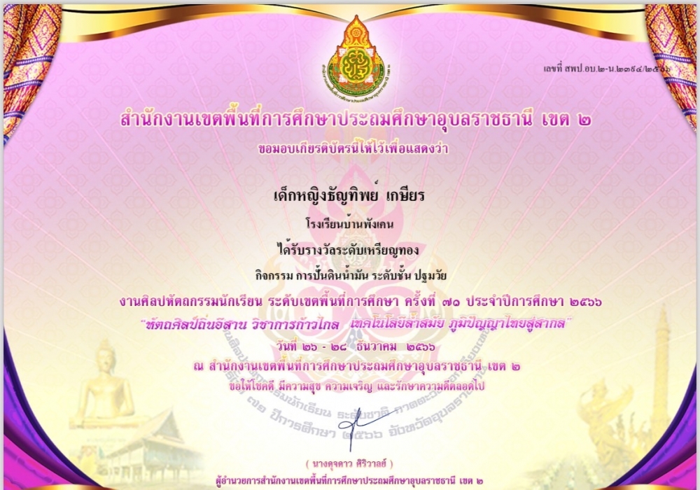 รางวัลเหรียญทอง การประกวดแปรรูปอาหาร ระดับชั้น ป.๔-ป.๖